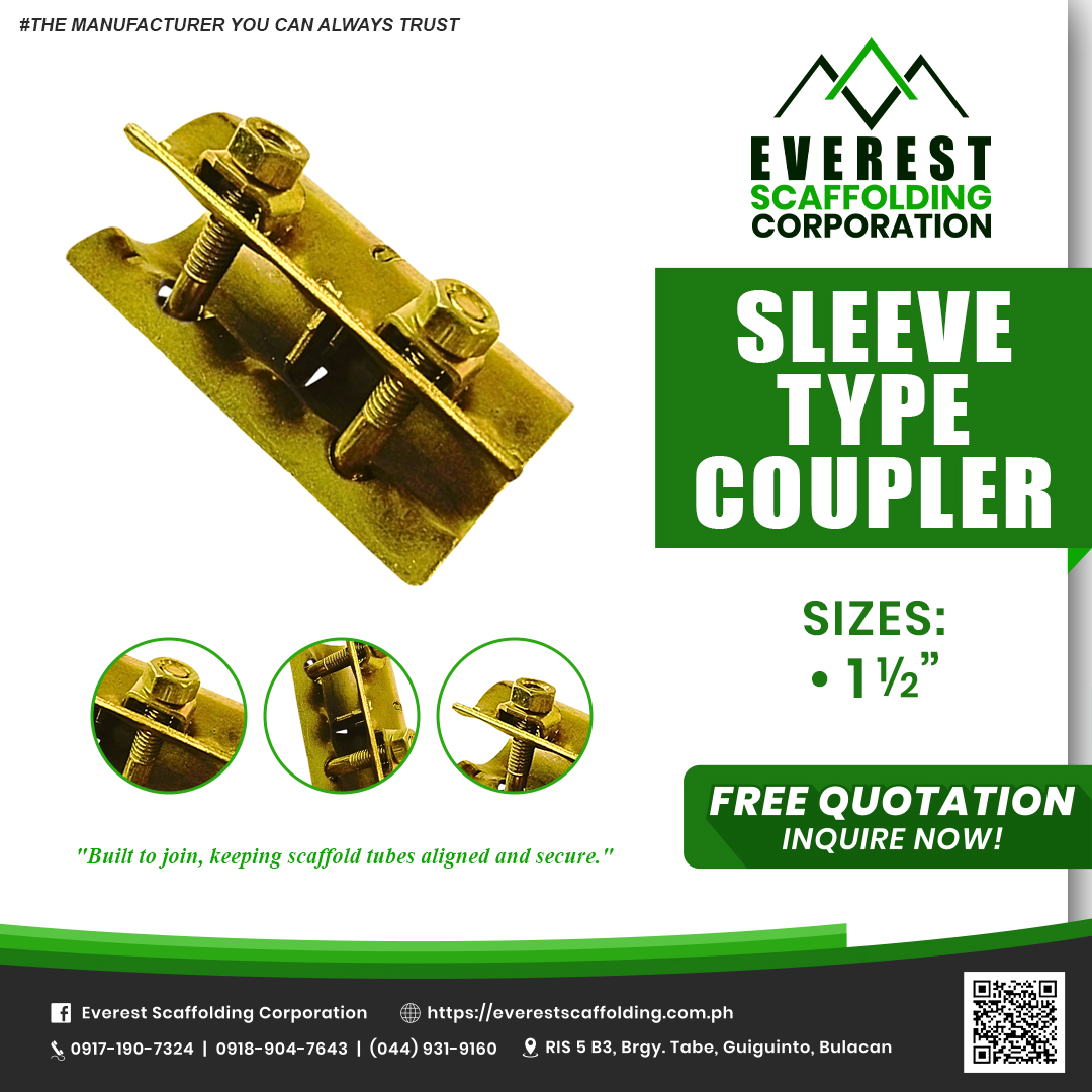 Sleeve type coupler is a scaffolding connector used to join two scaffold pipes end-to-end in a straight line, forming a continuous length of tube.