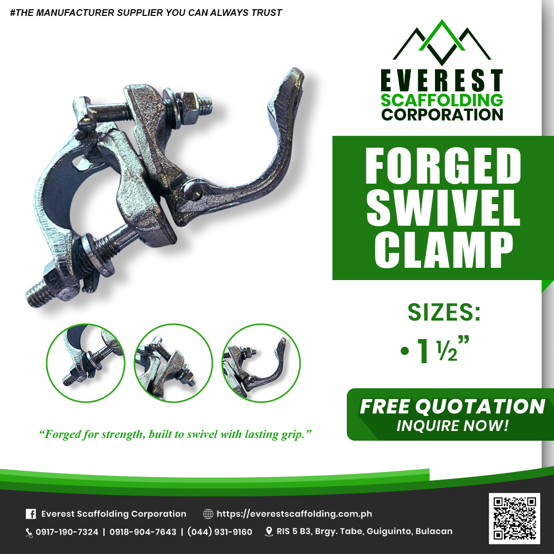 Forged swivel clamp is a heavy-duty scaffolding coupler made through forging, used to connect two scaffold pipes at any adjustable angle while providing higher strength and durability than standard swivel clamps.