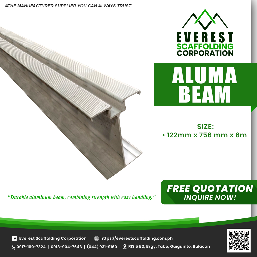 Aluma beam is a lightweight structural beam made from high-strength aluminum alloy, used in scaffolding, formwork, and temporary construction systems to support loads while reducing overall weight.
