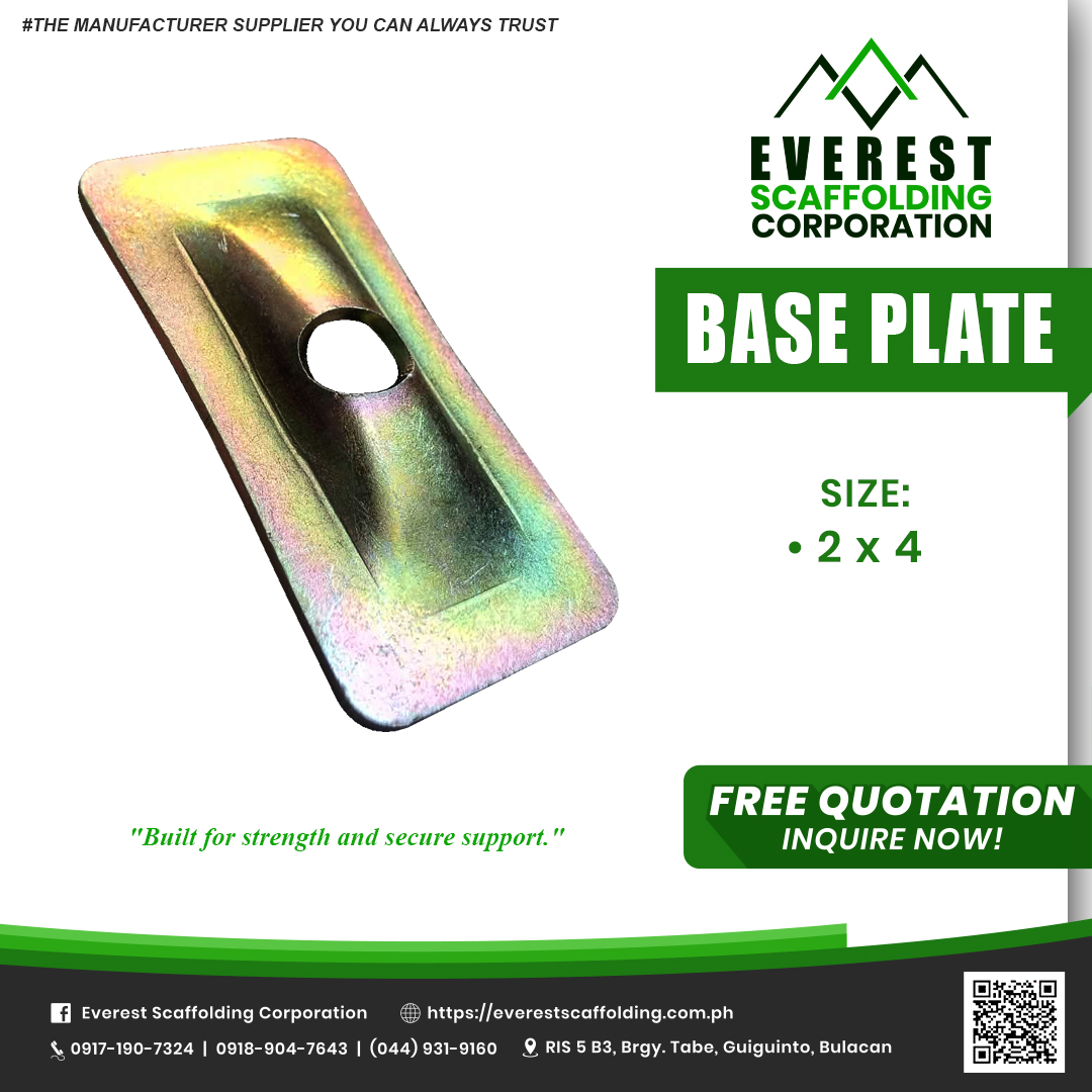 Tie rod plate is a steel plate used together with a tie rod to distribute load and secure the rod firmly against a surface or scaffold component.